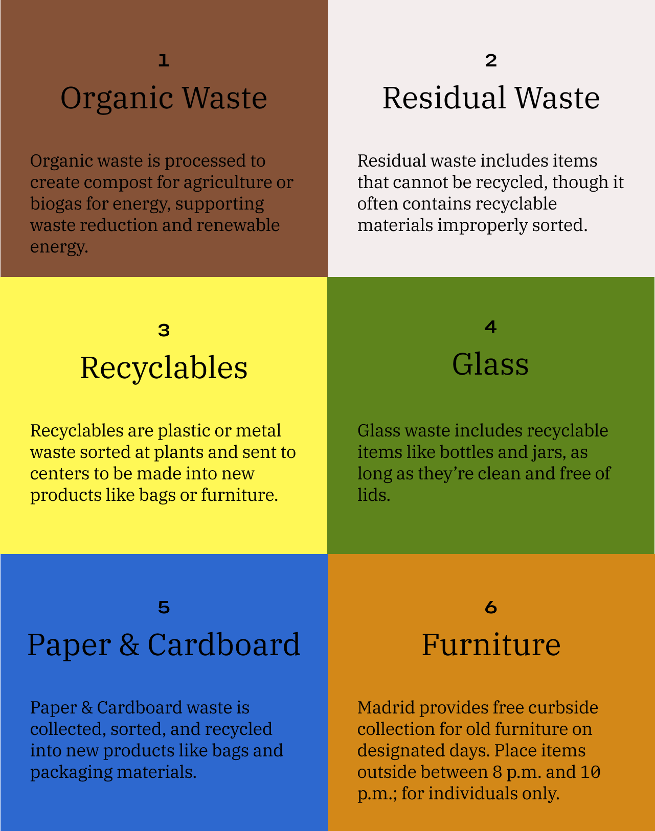 At Ukio, we support sustainable practices and believe in the importance of recycling. This section will guide you through everything you need to know about recycling in Madrid, from sorting your waste to finding local recycling services. Together, we can make a positive impact!